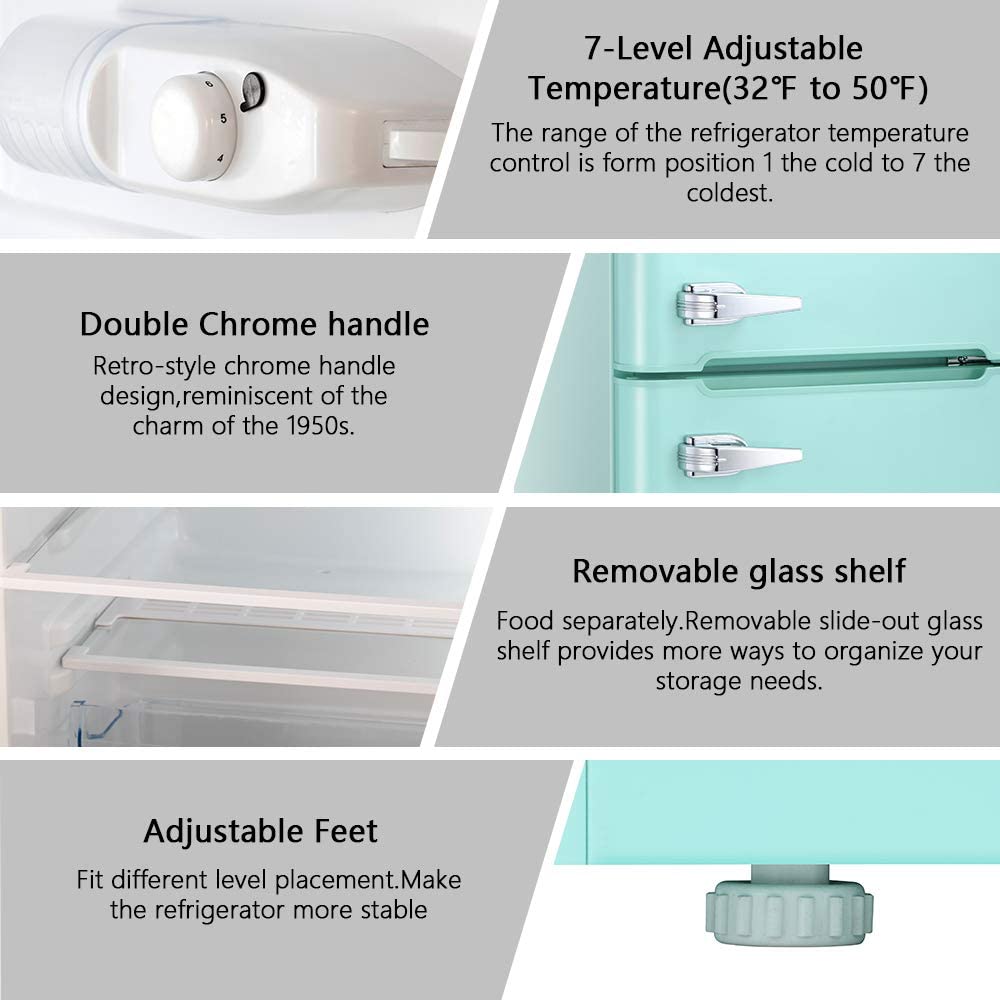 - 【7-Levels Temperature Control】- By turning the thermostat knob, the range of the refrigerator temperature control is form position 1 the cold to 7 the coldest.our refrigerator can be adjusted to refrigerator compartment 32′ to 50′ F / Freezer compartment 3′ to -1’F.