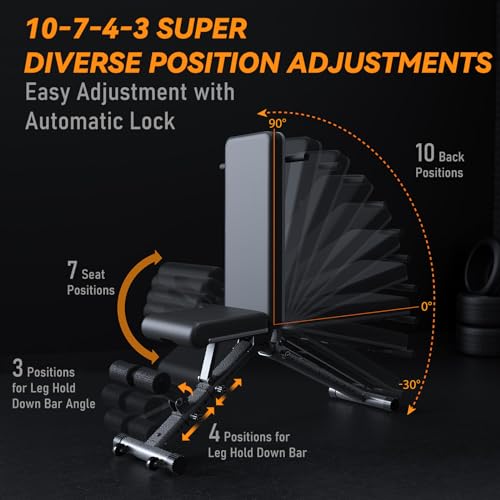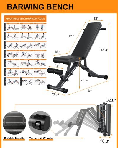 【BARWING ADJUSTABLE WEIGHT BENCH】7 Seat position adjustments. 4 and 3 leg hold bar position adjustments. With so many posture adjustments, plus the attached workout chart poster, you can do various workouts with the bench press. BARWING’s 10-7-4-3 exercise bench allows you to exercise more freely and comfortably, burn your calories and train your muscles as much as you like. This link product is the old version, new product please select Color:New Model.
