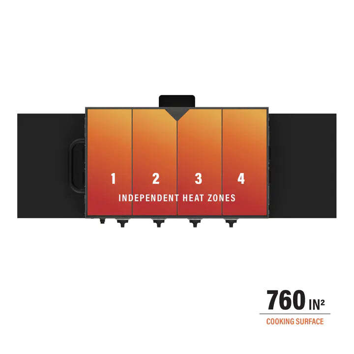 - Large 720 square inch cooking area; perfect when cooking for large groups