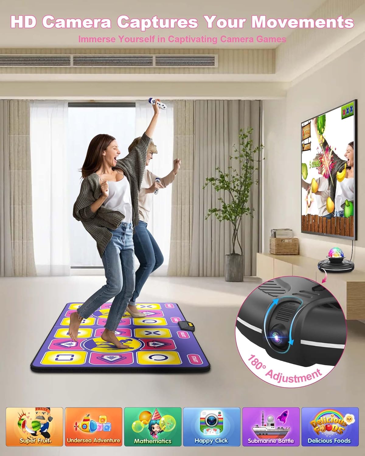 Dance Mat, Interactive Dance Pad with Multiple Modes, Non-Slip Dance Mat for TV with HD Camera, Dance Mat for Girls Boys with Wireless Controller, Christmas/Birthday Gifts for Kids Adults