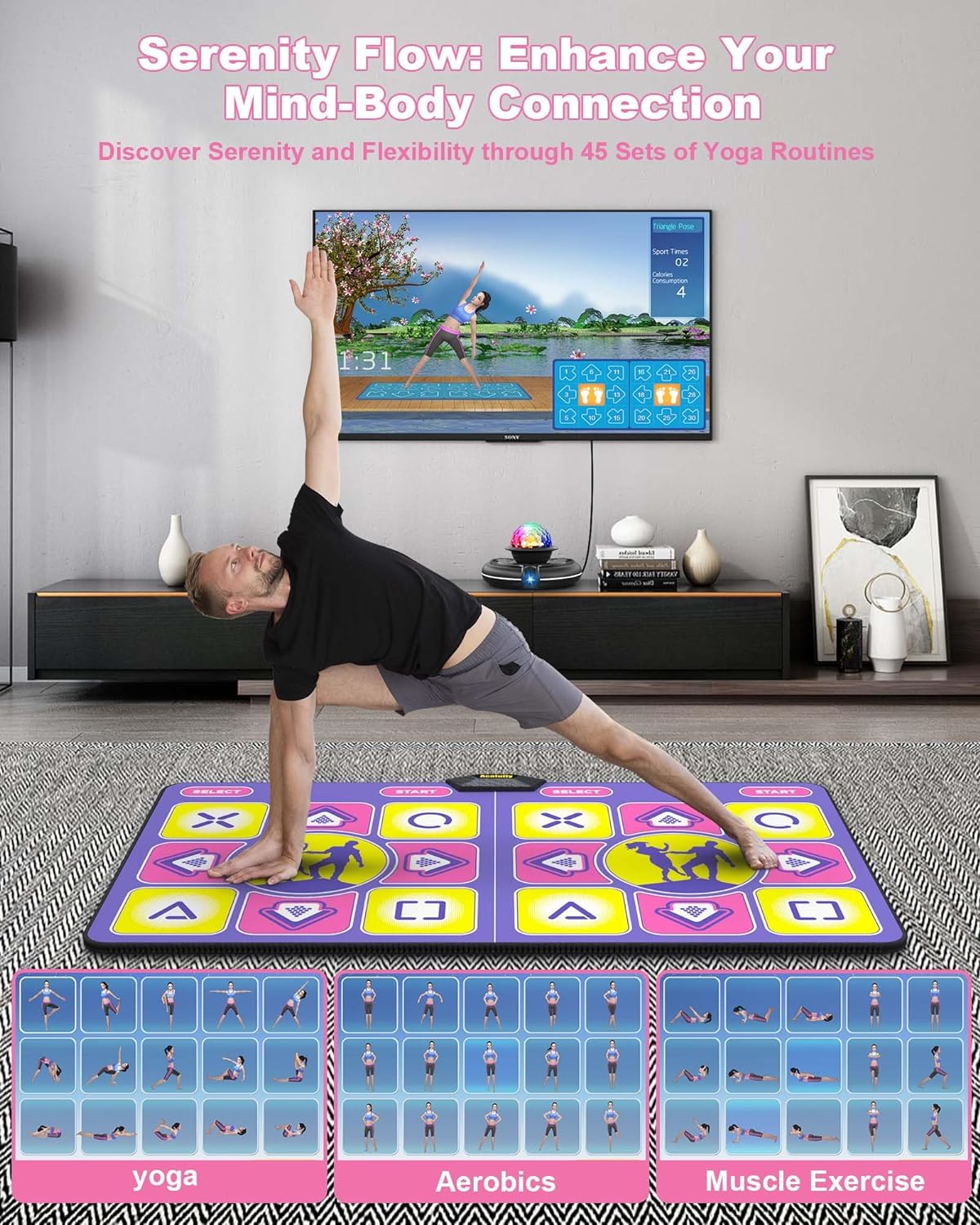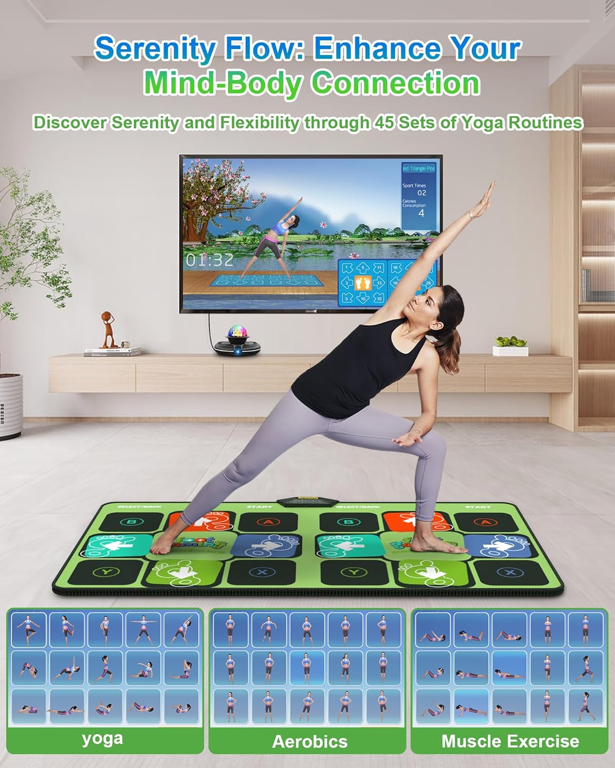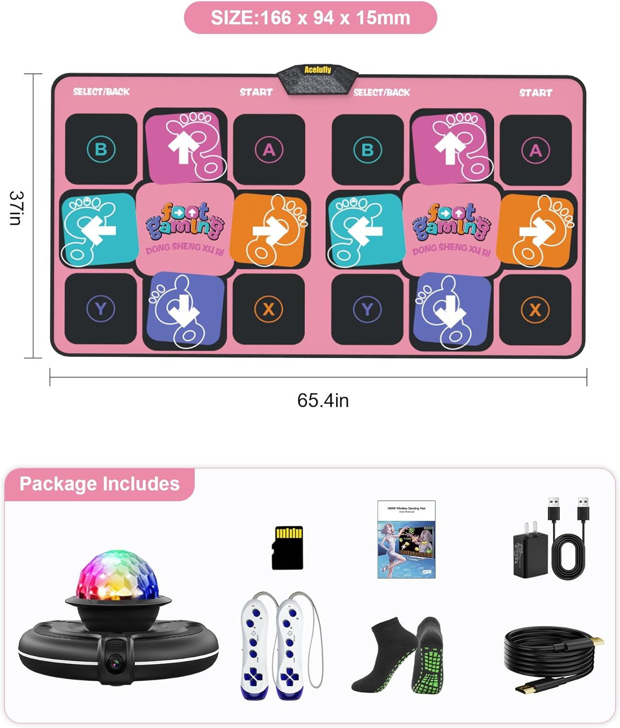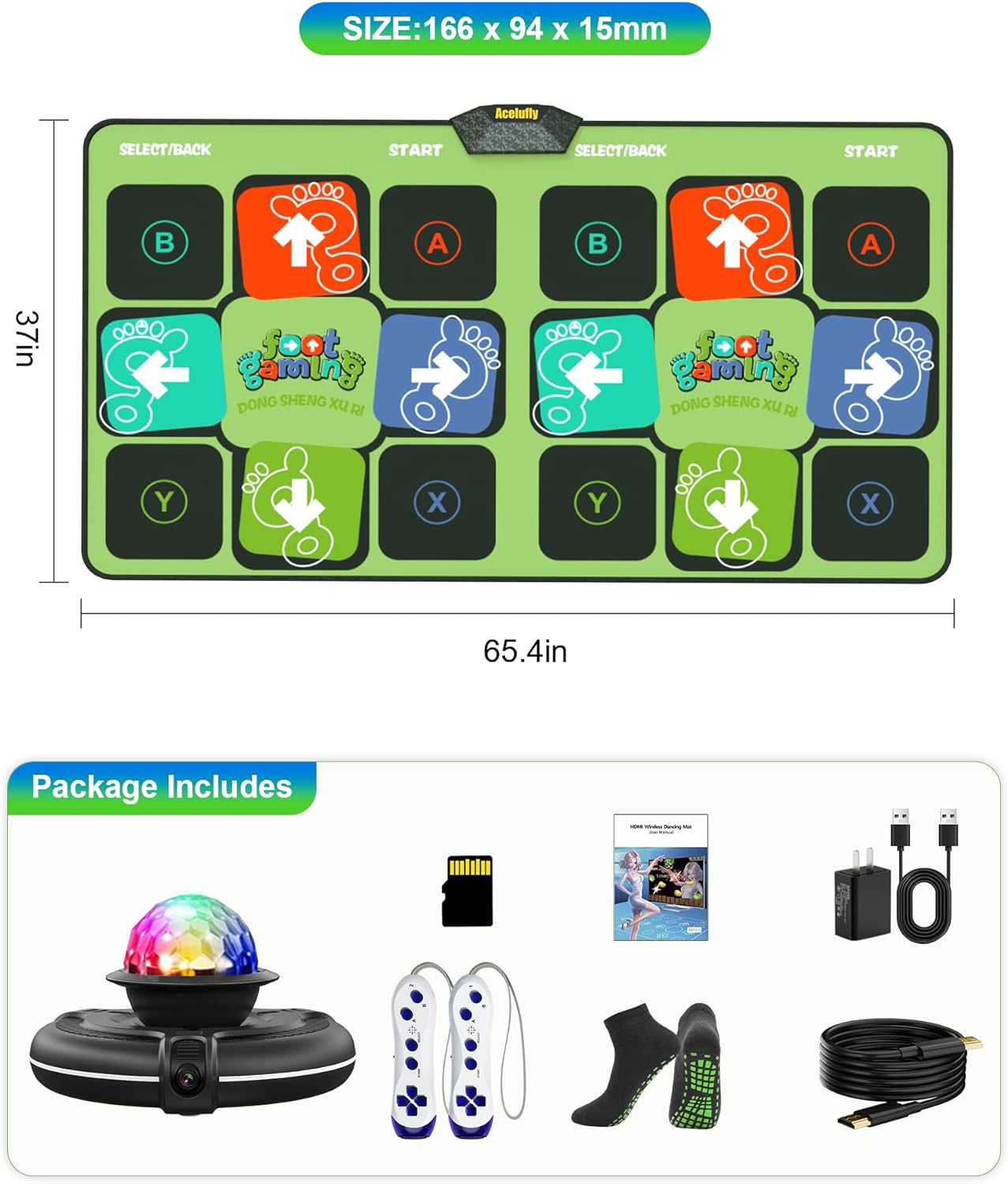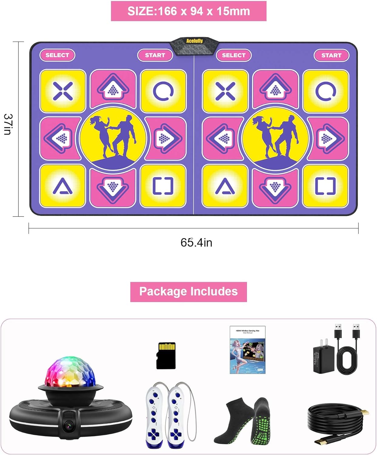 💃��ENERGIZE YOUR ENTERTAINMENT�� Acelufly interactive dance mat - where fun meets fitness! With 3 dance modes, 150+ songs, 6 immersive camera games, 45 yoga guides, 3 thrilling running games & a collection of 70+ wireless controller games, it's the ultimate entertainment package for everyone.