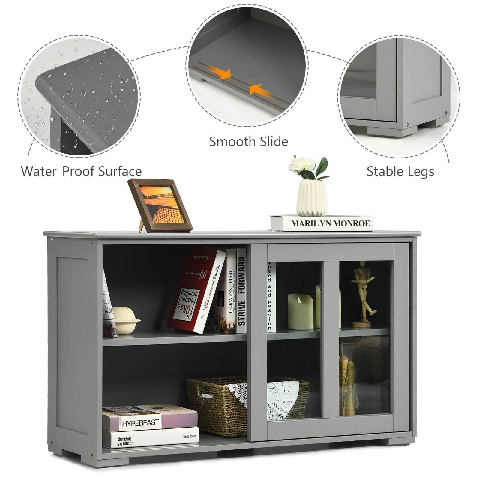 Giantex Stackable Buffet Cabinet, Kitchen Storage Cabinet with Sliding Tempered Glass Doors, Small Sideboard for Kitchen, Dining Room or Living Room, Grey