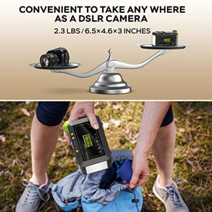 PORTABLE & COMPACT: Super slim size (6.5 x 4.6 x 3.1 inches) and light weight (2.4 lbs). Portable power station with compact handle design is not only for emergency power at home, but also for camping or wherever you need power when on the go. Perfect for school students to charge phone, laptop, iPad, PSP, camera, wireless headphones, etc.