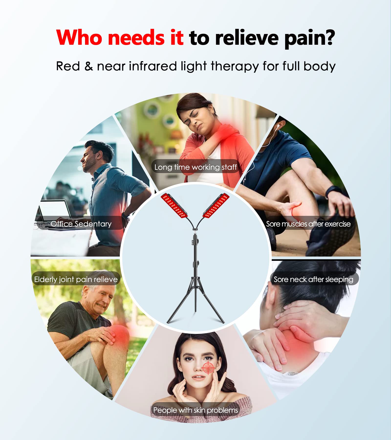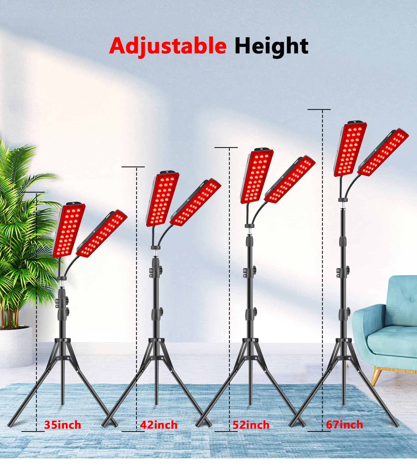 FLOOR-STANDING & WALL-MOUNTED: Comes with stand and hang up accessories, which allows you to have a red light therapy in more occasions at home without any space limit, in the meantime, it makes it a true red light therapy device for whole body, you can adjust it to expose almost every parts of your body to bask in the led light. (WARM REMINDER: please wear the included glasses when using for face)