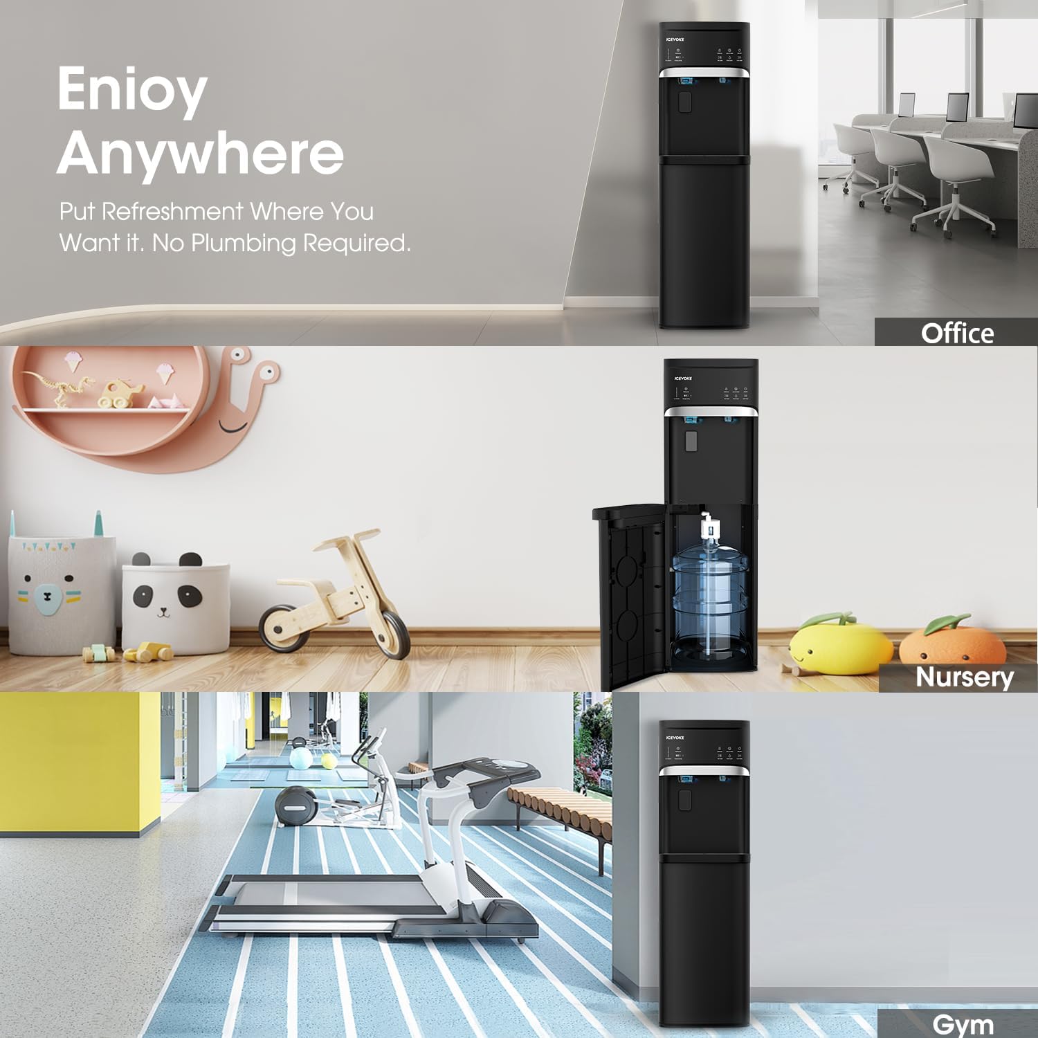 Self-Cleaning Water Dispenser with Ice Maker, Bottom Load, Black